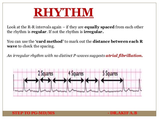 Mar 11, 2016 · simply count the number of large squares between r waves with the following rates: